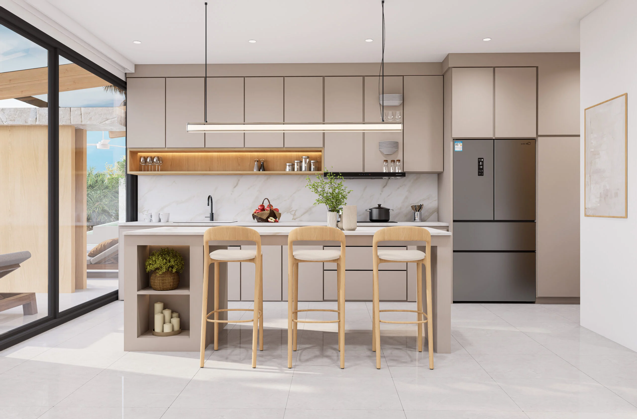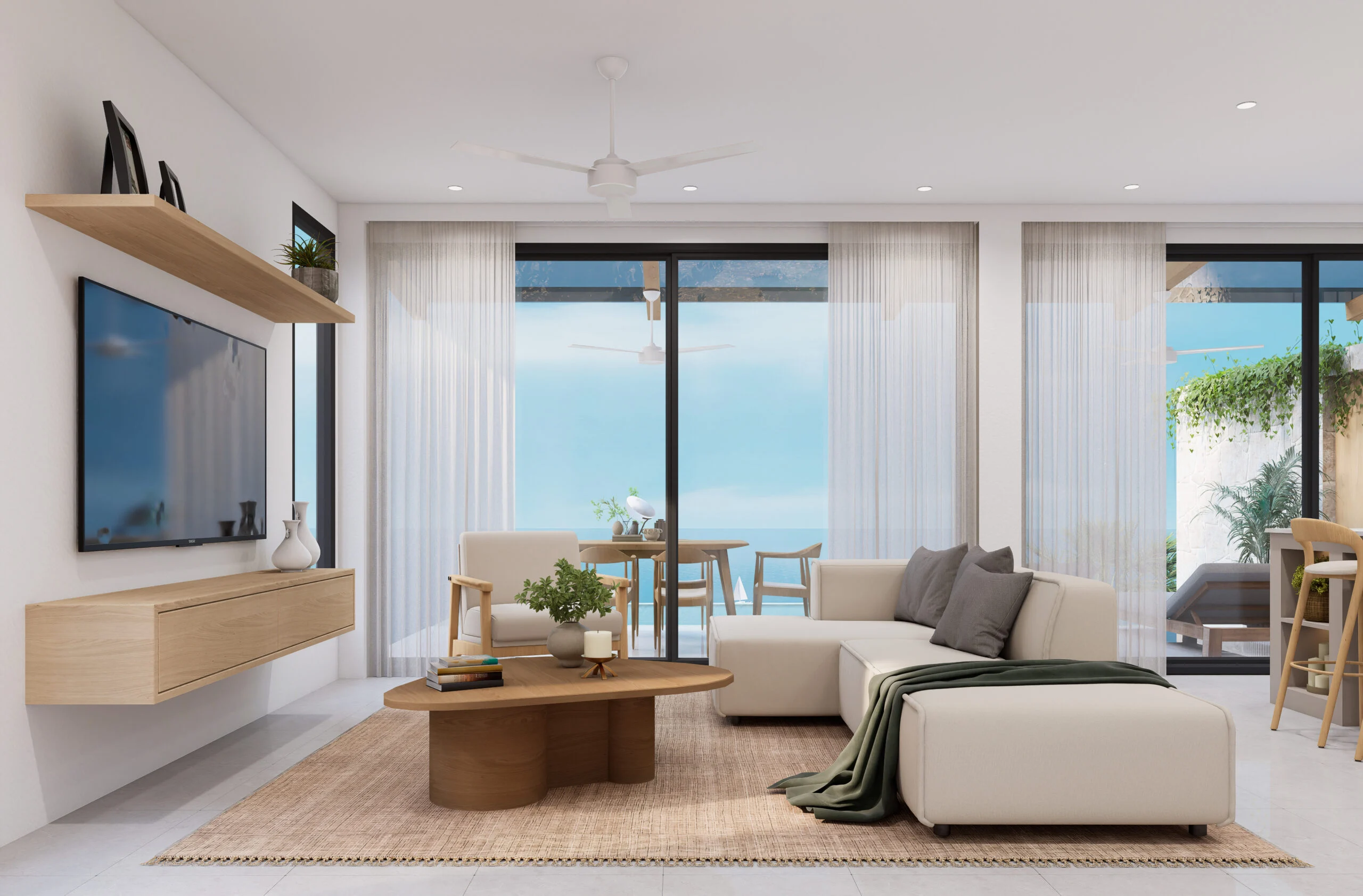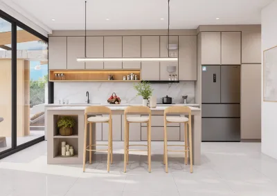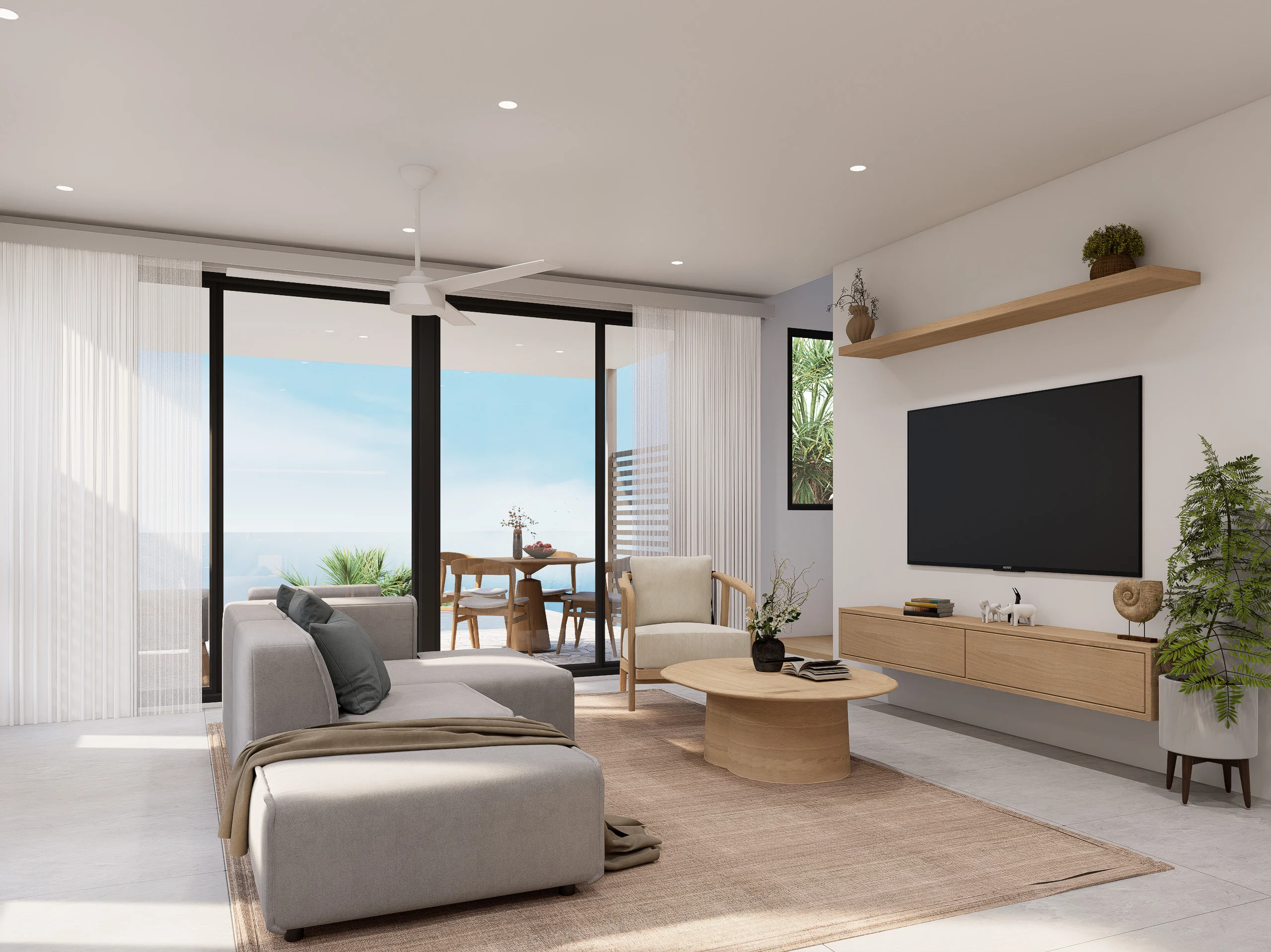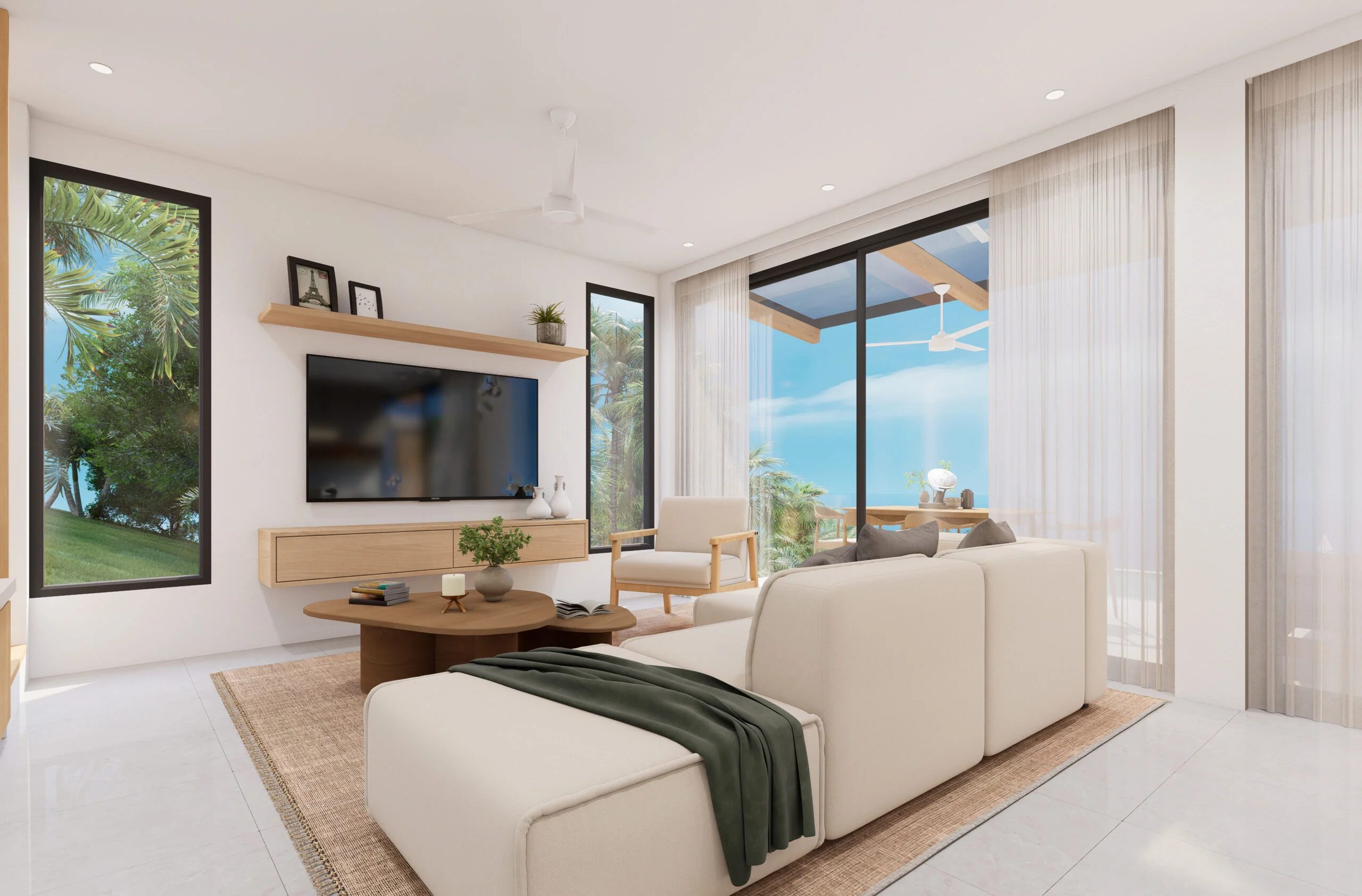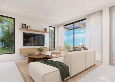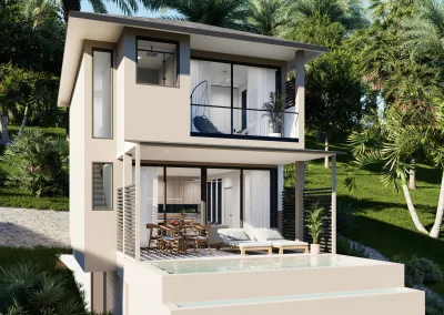 Jede Villa bietet einen Panoramablick aufs Meer, zwei Hauptschlafzimmer, einen großzügigen, offenen Wohnbereich, eine moderne Küche und einen privaten Pool mit Terrasse.