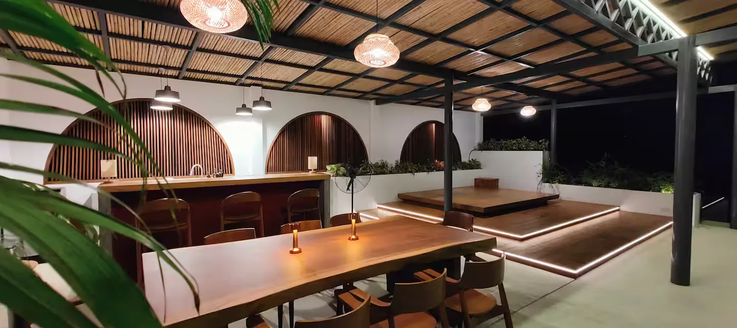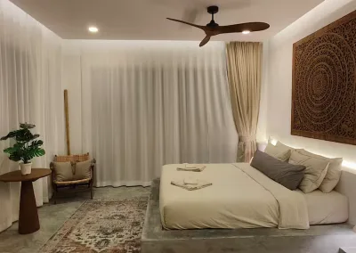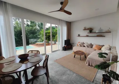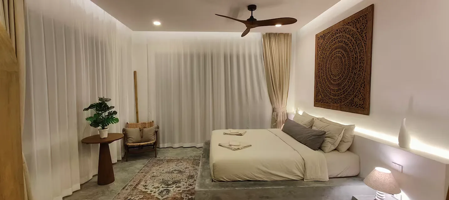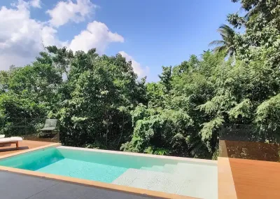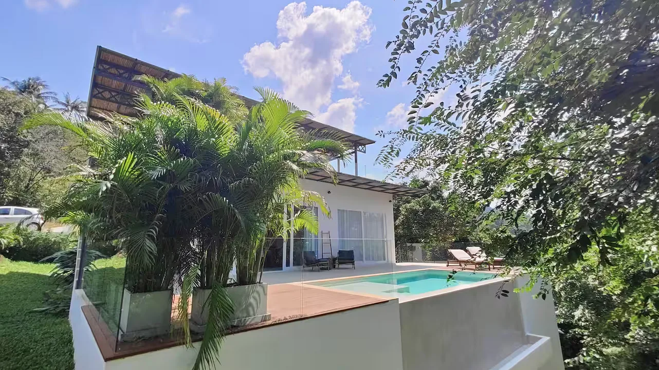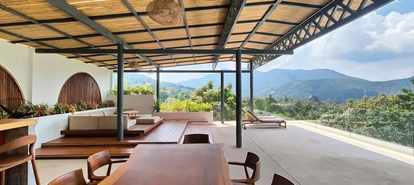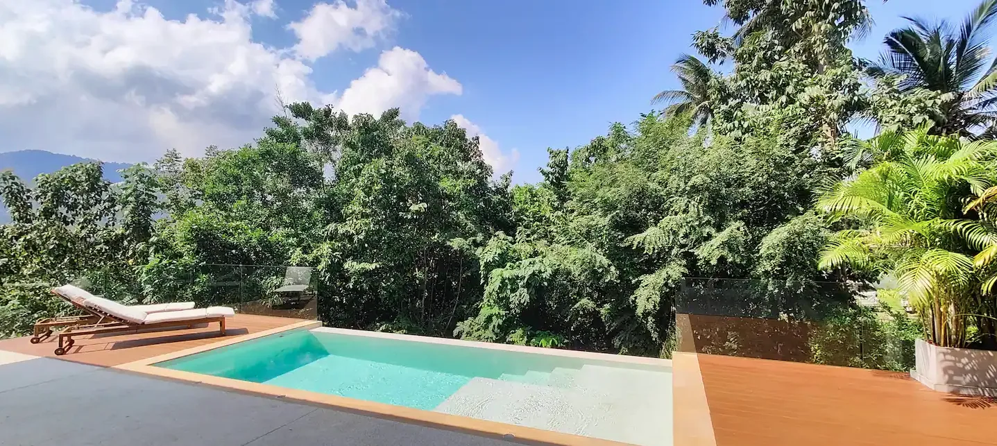 Die Villa verfügt über zwei Schlafzimmer mit jeweils eigenem Bad, einen hellen, offenen Wohnbereich, einen Salzwasserpool und eine Dachterrasse mit herrlichem Meer- und Bergblick über die Bucht. Das zweigeschossige Anwesen besticht durch fließende Übergänge zwischen Innen- und Außenbereich, hochwertige Ausstattung und großzügige Wohnbereiche, darunter eine Dachterrasse, die sich ideal zum Essen, Entspannen oder für unvergessliche Sonnenuntergänge eignet. In einer ruhigen und begehrten Lage in Chaloklum gelegen, ist diese Villa perfekt als privater Wohnsitz, Ferienhaus oder langfristige Kapitalanlage geeignet.